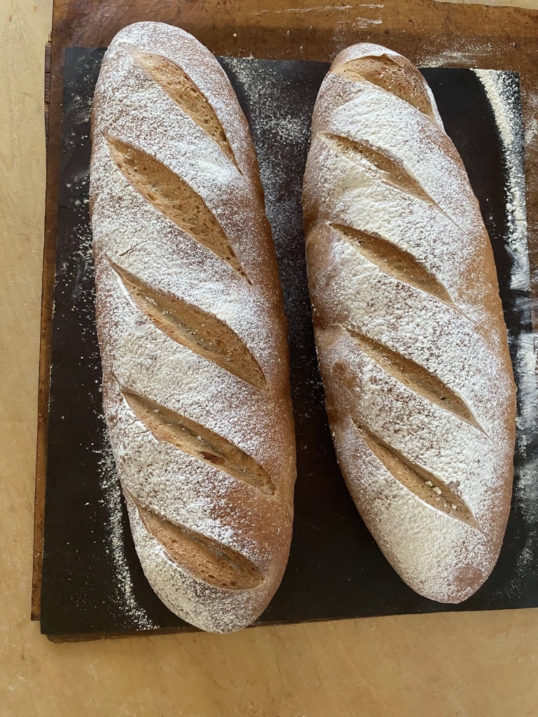 形をバゲット(杖)型にし、切り分けやすくしました。