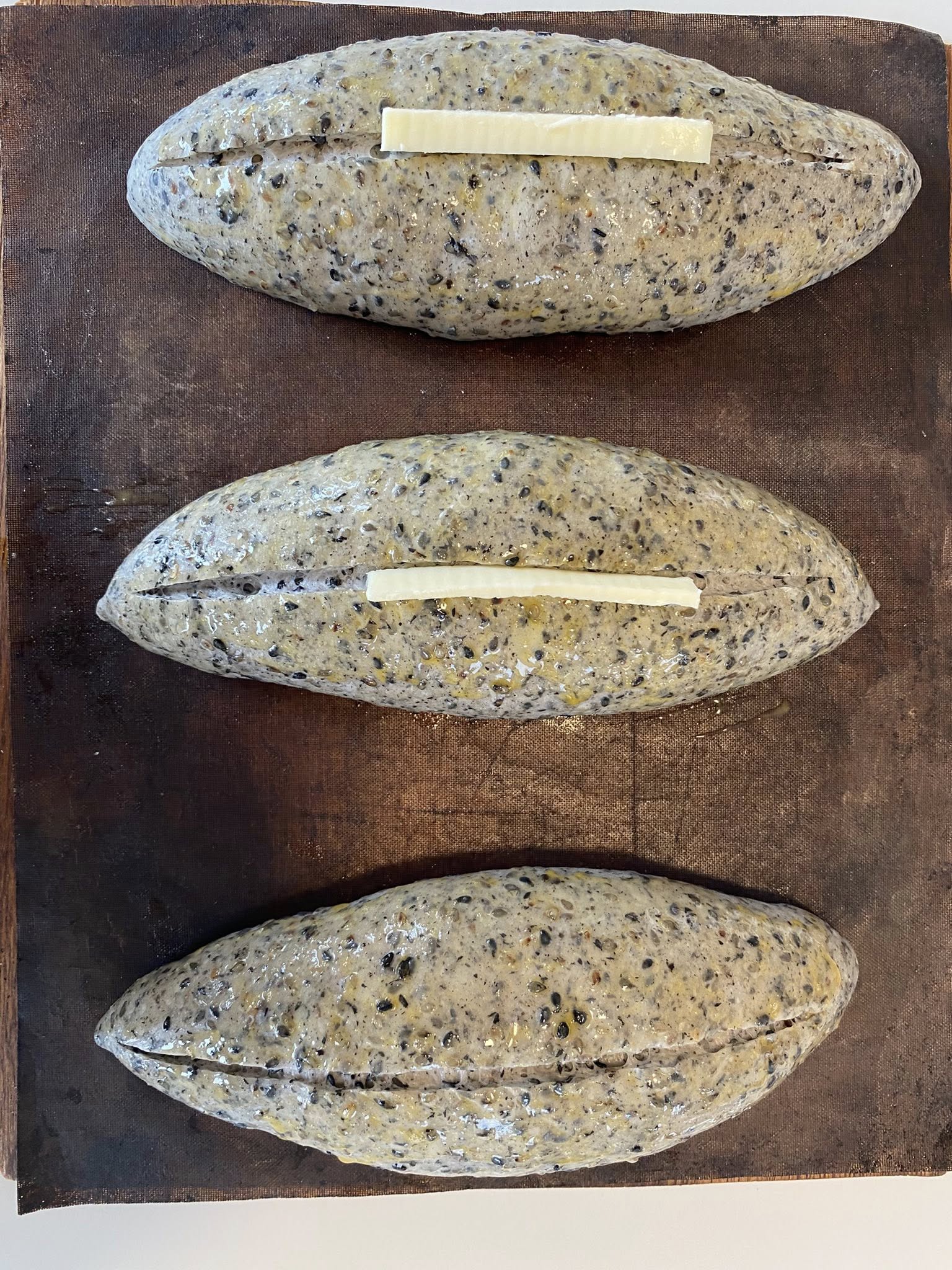 生地の張りがいまいちでも(笑)、バターの力を借りるとクープが何倍もよく開くからです。