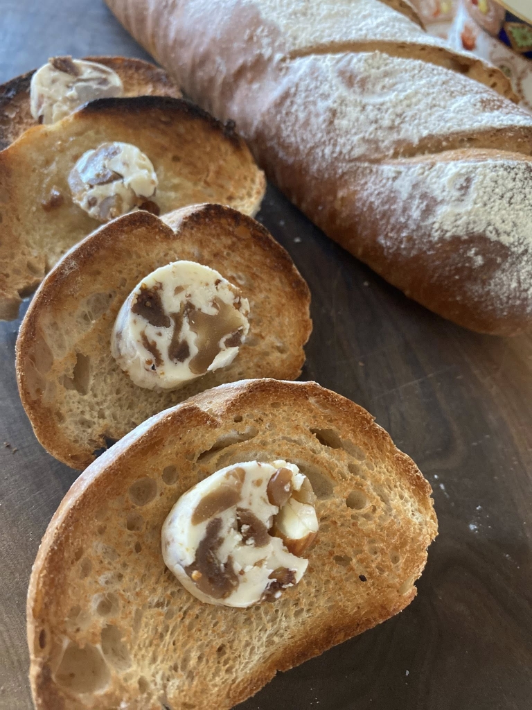 有塩バターに、ラム酒漬けの具材を混ぜたフルーツバター