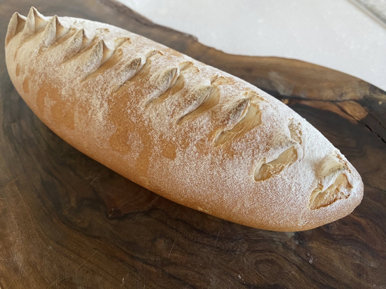形をバゲット(杖)型にし、切り分けやすくしました。